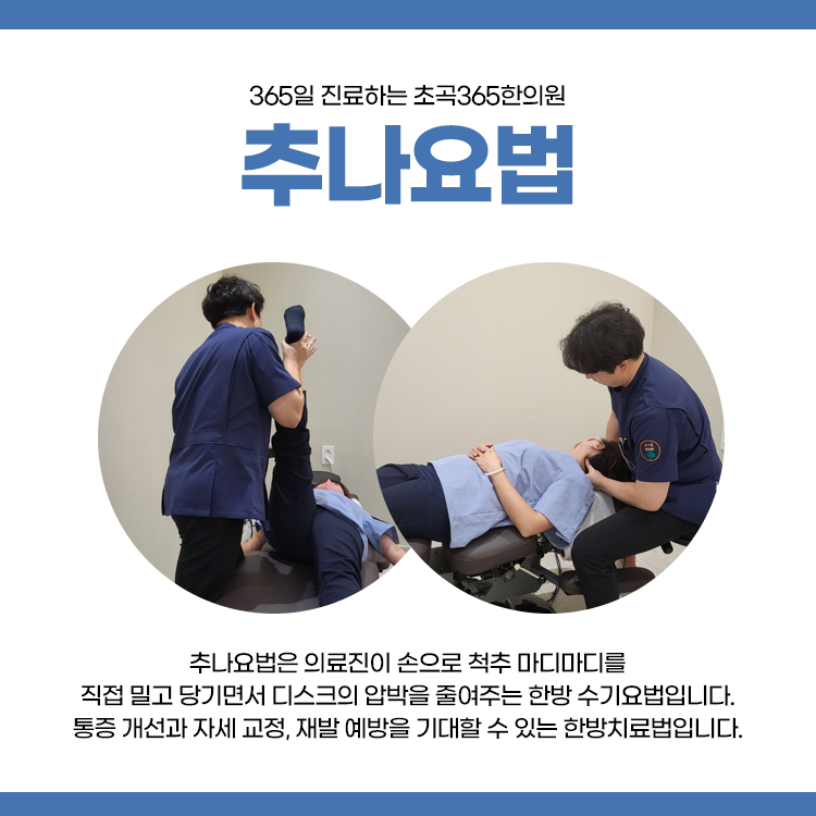 신경이 압박되어 손발도 찌릿거릴 수도 있으며 이로 인해서 감각이상이나 근력저하로 발전할 수 있으니 주의해주는게 필요할 텐데요. 허리디스크의 증상에 따라서 각종 한방치료가 적용될 것이고 그 중 추나요법은 숙련도 있는 의료진이 손이나 신체 일부를 직접 이용하여서 어긋난 척추를 밀고 당겨 바르게 교정해주는 수기요법이라고 합니다.