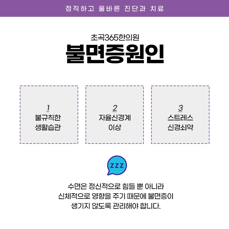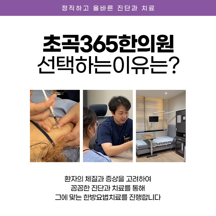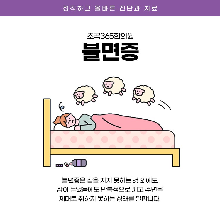 이런 증상이 현재 내 상태와 유사하다면 불면증이 아닌지 의심을 해보고서 포항 불면증 한의원 방문을 통해 치료를 받아보셨으면 하는데요. 초곡365한의원은 환자의 체질, 수면 패턴, 증상 등으로 여러 한방요법을 진행합니다. 한방치료로 심신 안정과 수면 유도에 도움을 드리도록 하는데요. 저하된 면역력 향상으로 몸과 마음을 건강하게 만들 수 있도록 합니다.