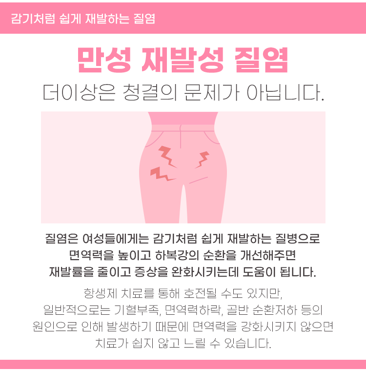 질염으로 인해 고민중이시라면 골반 내 장기의 흐름을 개선하기 위한 한약치료를 생각해보시는 것도 좋으며, 침이나 약침요법을 통하여 면역력을 회복하도록 돕는 치료 또한 추천드립니다.