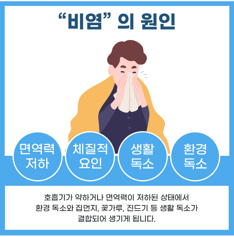 먼지와 침대 이불 베개 등의 집먼지진드기 담배연기나 매연 피부에 바르는 화장품을 비롯해서 온도의 변화와 스트레스등도 원인이 될 수 있습니다. 또한 더러 특정 음식을 먹고 비염 증상이 악화된다면 음식에 의한 알레르기인지도 확인하는 등 생활에서의 노력도 병행하는 것을 추천드립니다. 비염은 치명적이지는 않지만 삶의 질을 떨어뜨리는 질환이기 때문에 포항 비염 한의원 초곡365한의원에서 꾸준한 치료와 관리를 통해서 증상을 완화시키고 편안한 일상을 다시 되찾으실 수 있으시기를 바랍니다.