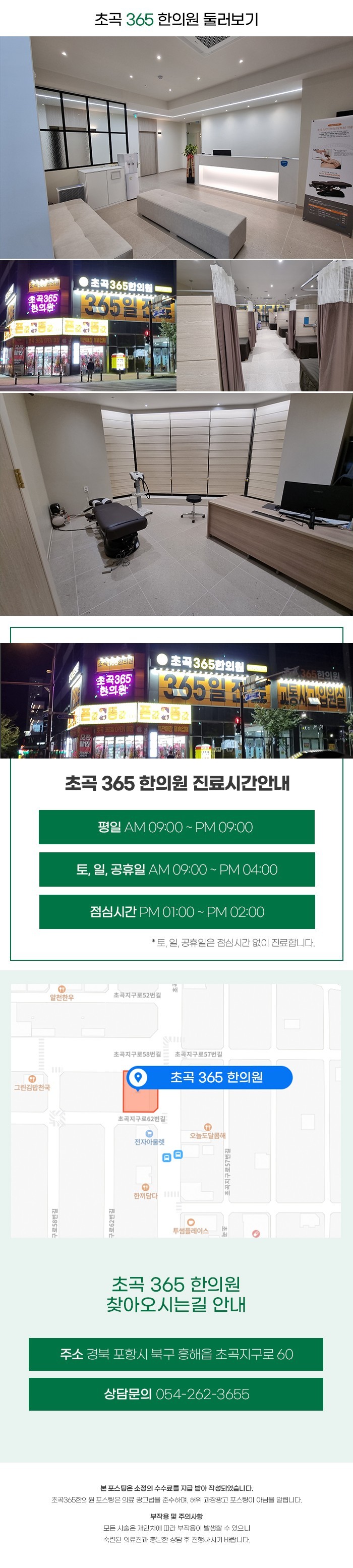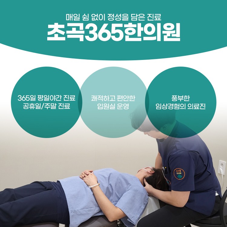 초곡365한의원에서는 통증 개선을 위해 뜸치료, 추나 치료, 한약 처방, 침치료 등 다양한 방법으로 염증을 해소해드리고 있습니다. 통증이 극심하다면 환자 체질에 맞게 한약 처방을 통해 통증 경감에 도움을 드립니다.