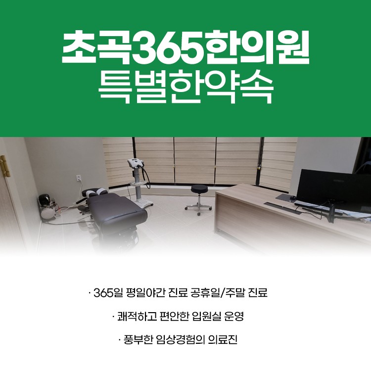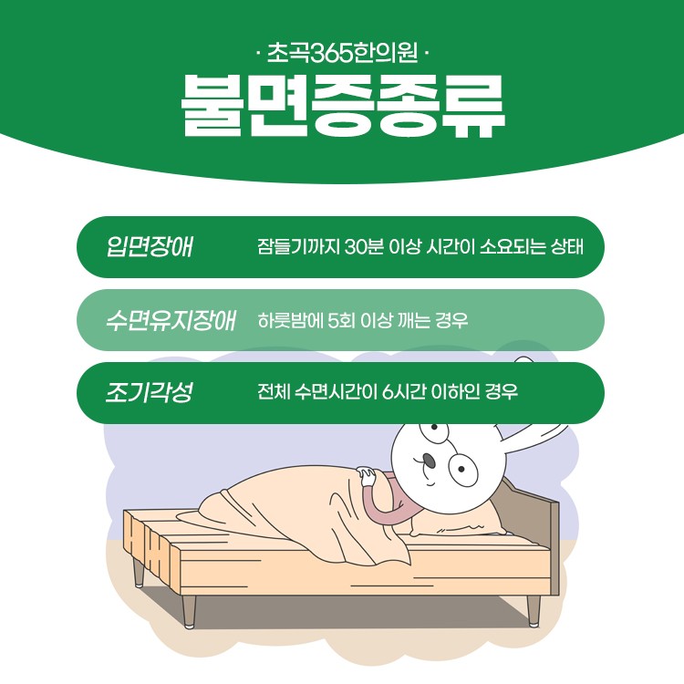 불면증의 원인과 증상은 다양하기 때문에 그에 맞는 치료법도 다를 수 있습니다. 그러니 초곡365한의원에서 검사와 진단을 받아보시고 본인에게 맞는 치료법으로 치료를 시작하시길 바랍니다. 불면증은 한번 발생하면 단기간에 개선하는 것이 어렵기 때문에 꾸준한 치료를 진행하는 게 바람직합니다. 불면증이 있다면 가볍게 생각하지 마시고 치료와 관리를 통해 건강한 수면의 질을 회복하시길 바랍니다. 감사합니다.