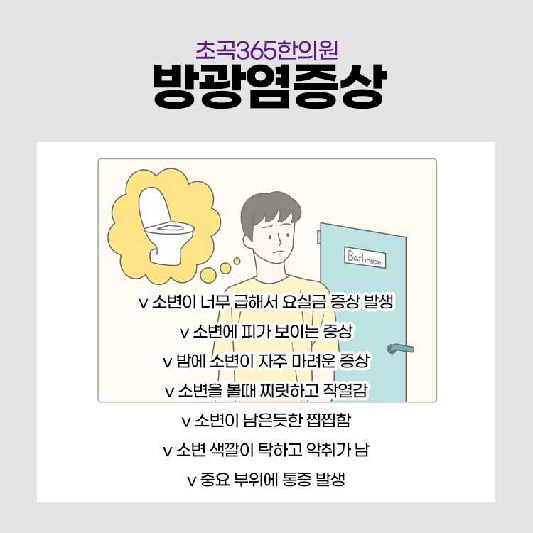 술, 담배 증으로 전립선이 커지게 되면서 요도가 눌려지고 방광에 압박이 가해지게 되면서 소변을 볼 때면 통증이 느껴지게 되는 것인데요. 증상이 악화되기 전 빠르게 포항 배뇨장애 한의원 방문을 해보셔서 개선을 하기 위한 초곡365한의원에 한방 치료를 받아보셔야 될 수도 있으십니다.