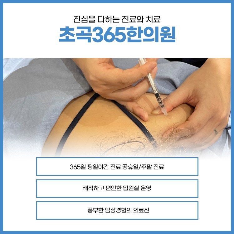 치료하지 않고 방치하면 만성화로 발전될 수 있습니다. 만성화가 되기 전 치료 기간이 오래 걸릴 수도 있어서 해당 질환을 의심한다면 초곡365한의원으로 방문을 해보시기 바라며 근막통증증후군 치료를 진행해기 위해서 다양한 한방요법이 진행됩니다.