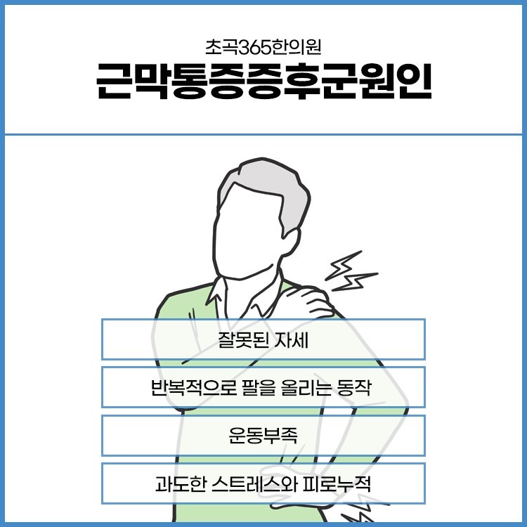 근막통증증후근이 나타나는 원인은 무리한 운동, 잘못된 자세를 오래 유지하고 지속되어 긴장 상태나 스트레스 그리고 운동 부족 등으로 나타나는 질환입니다. 나이와는 관계없이 누구에게나 발생하는 질환이라서 늘 주의해야 하는데요.