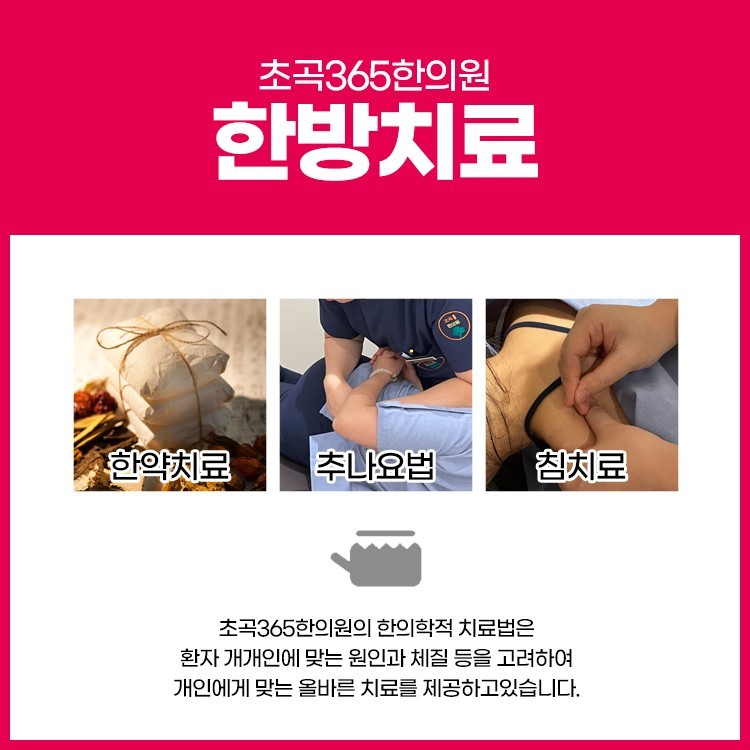 치료 시기가 적합할 수 있게 지속적인 한방 치료를 받아보신다면 개선될 수도 있는데요. 초곡365한의원에서 진행하게 될 한약을 꾸준하게 복용해보면서 재발을 막고 다른 질환과 후유증 예방에 효과적일 수도 있는데 한약을 비롯하여서 침, 약침, 부항, 뜸 등 다양한 한방요법이 진행되기도 합니다.