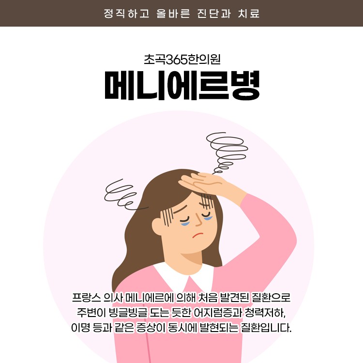 메니에르병은 어지러움을 일으키는 대표적인 질환 중에 하나인데요. 메니에르란 병에 대해 처음 듣게 되는 분들도 있으실 것이라고 생각하고 있습니다. 그래서 생소한 단어이기도 한데요. 해당 질환은 귀 내에 림프액이 증가하면서 압력으로 문제를 발생시키는 것을 말하는 것입니다 .청각, 전정신경 기능에 문제가 나타나서 방치하지 말고 적극적인 치료를 받아보셔야 되겠습니다.