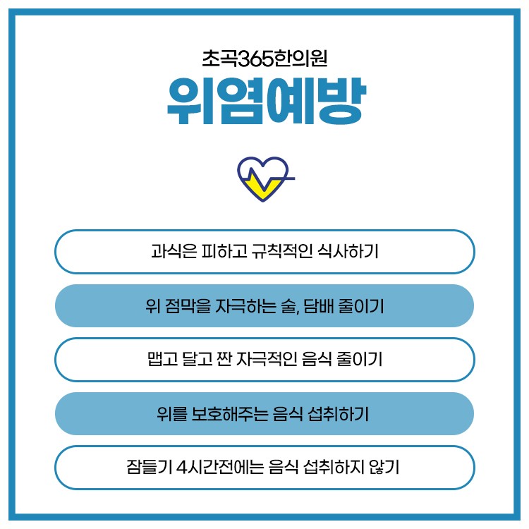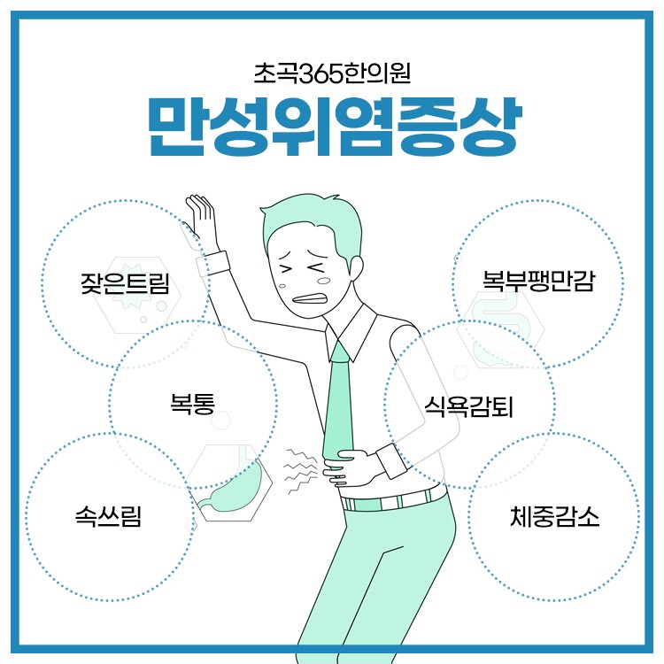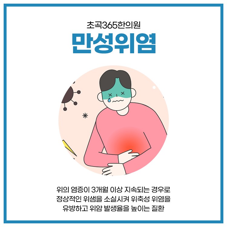 초곡365한의원은 개인의 증상과 체질 그리고 원인 등을 통해 진료를 이루며 체내 노폐물 및 독소 제거, 기혈순환을 원활히 이루며 자율신경계 정상화로 신체 균형과 체질 개선을 이루면서 질환 개선과 예방에 도움을 드릴 수 있도록 합니다. 소화 기능 질환을 방치하면 다른 질환을 일으킬 수 있어서 빠른 치료가 필요할 수 있습니다.