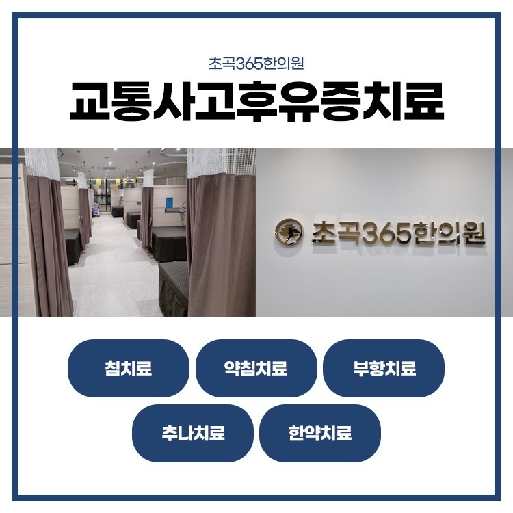 교통사고 후유증 뿐만 아니라 모든 질환들을 방치하게 될 경우에는 좋지 못한 결과가 생길 수 있기 때문에 초기 진료가 중요하다고 이야기를 해드리고 있습니다. 초곡365한의원에서는 후유증을 개선하기 위해서 침 치료와 약침 치료, 부항 치료와 추나요법 등을 진행하고 있으며 환자분들의 증상과 정도에 맞게 치료법을 시행하고 있습니다.