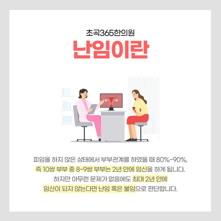 아무리 임신을 시도해도 되지 않아 울적하고 스트레스를 받았던 부부가 계신다면 하루빨리 본원에 내원하셔서 적절한 치료를 받으시길 바랍니다. 혼자만의 고민이 아닌 부부 서로가 노력하고 적극적으로 치료를 받으셔야 합니다. 직장과 일상생활로 인해 시간적 여유가 없으신 분들을 위해 본원에서는 매일 평일 야간진료를 진행하고 있습니다.