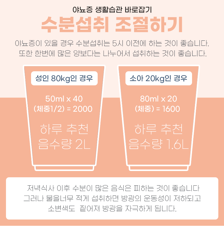 일반적으로 성인 야뇨증은 남성보다 여성에게 조금 더 많이 나타나게 됩니다. 하지만 보통 여성들은 비뇨기과가 가는 것을 두려워합니다. 특히나 미혼 여성이라면 더욱 그렇습니다. 하지만 요즘은 남성과 여성은 분리해 진료하는 곳도 많습니다. 아프면 병원에 가는 것이 당연하고 아무도 이상하게 생각하지 않으니 걱정 없이 내원하시길 바랍니다. 초기에 발견하면 간단하게 치료할 수 있는 병도 방치하면 큰 병이 됩니다. 포항 야뇨증 한의원 초곡 365 한의원의 검사를 통해 정확한 원인을 찾고, 한방치료를 통한 진료를 받으면 충분히 치료할 수 있으니, 더 좋은 삶의 질을 위해 용기를 내시길 바랍니다. 또한 기본적인 생활 습관으로는 자기 전에 수분 섭취를 줄이고, 소금을 충분히 드시는 것도 좋습니다.