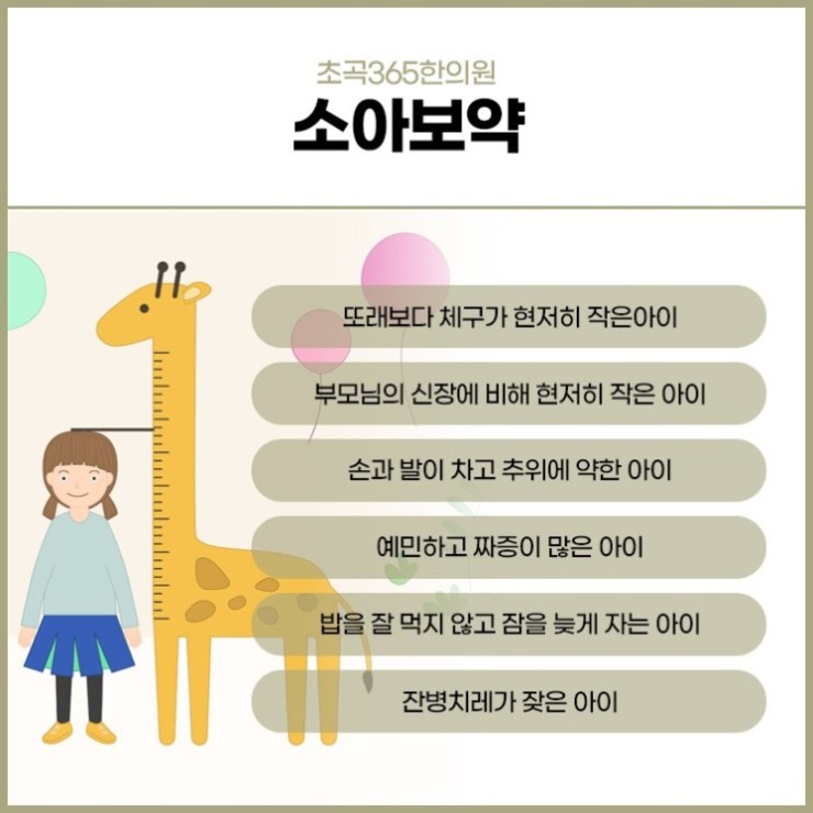 또한 또래와 비교할 땐 체구가 작은 아이나 부모님 키에 비해 현저히 작은 아이, 손과 발이 유독 차갑거나 추위에 약한 아이, 예민하고 신경질적인 아이, 밥을 잘 먹지 않고 편식이 심한 아이, 잠을 늦게 자거나 푹 잠들지 못하는 아이 등 부모님이 볼 때 앞으로 성장을 돕고자 한다면 언제든 포항초곡 소아보약 도움을 받아 볼 수도 있습니다.