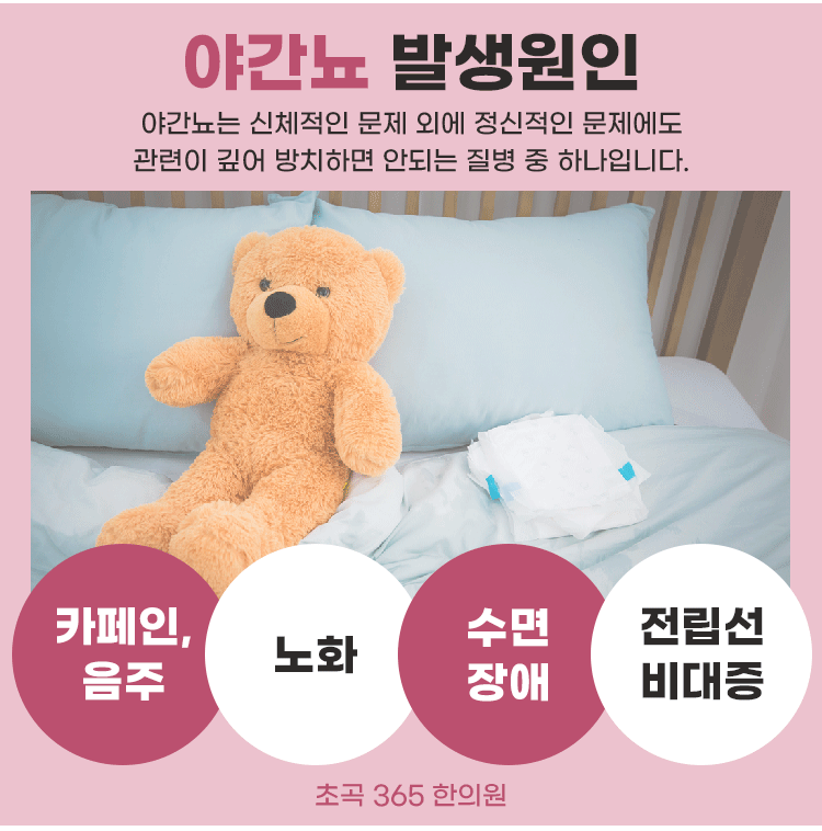 안녕하세요! 여러분은 밤 중에 주무시다가 얼마나 자주 화장실을 가시나요? 깊은 숙면으로 인해 한 번도 가지 않으시는 분들도 계시는 반면에 수시로 들락날락해 제대로 수면을 취하지 못하고 일상생활 중에 항상 피로를 달고 사시는 분들도 계십니다. 그런분들은 아침부터 다시 일상생활을 시작해야 하는데 제대로 된 잠을 이루지 못하니 집중력도 떨어지고 안 그래도 피곤한 일상이 더 고되게 느껴집니다. 사람의 3대 욕구 중 하나인 수면욕. 얼마나 잘 자느냐가 집중력과 사고력에 영향을 주기 때문에 숙면을 취해주시는 게 중요한데요. 나이를 먹어서 그런가 싶다가도 이대로는 도저히 안되겠다 싶어서 해결 방법을 찾고 계시지만 딱 이렇다 할 방법을 찾지 못하셨다면 포항 야간뇨 한의원 초곡365한의원에 내원하시는 것을 추천드립니다.