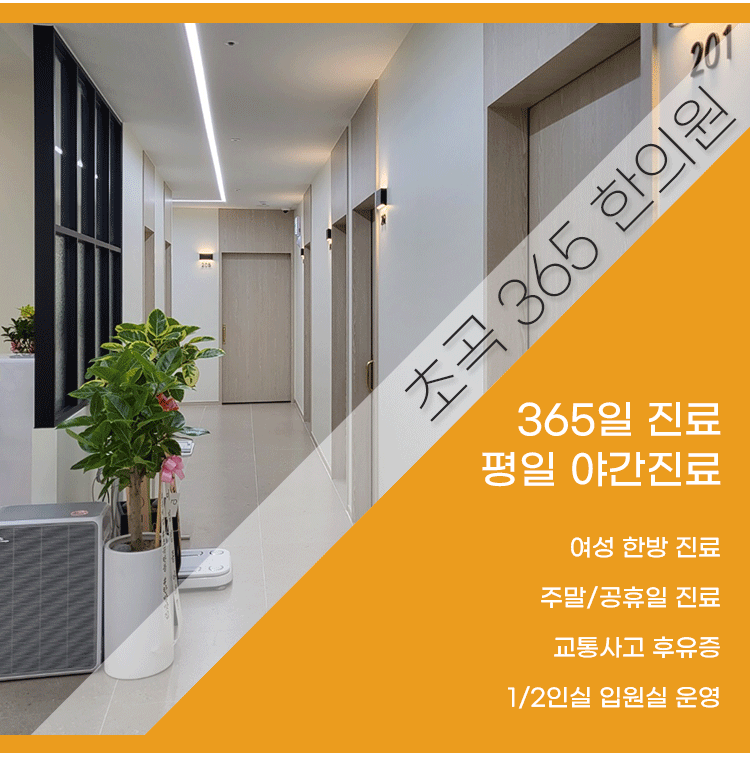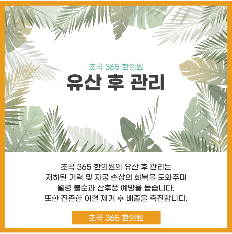 이렇게 순차적으로 치료가 되어야 하고 보약의 개념도 어혈과 오로가 모두 배출이 되고 처방이 되어야 어혈이 고착화되는 것을 예방할 수 있습니다. 이와 함께 복통이나 골반통증 등이 있는 경우에는 원인에 따라 뜸, 부항, 물리치료 등을 병행하여 치료하기도 하며, 모두 다른 산모의 체질과 상태에 맞추어 진행이 되고 가급적 초기에 빠르게 이루어지는 것이 좋습니다. 유산 이후에는 워낙 정신이 없고 자신의 몸을 돌볼 여유를 갖지 못하시는 분들이 많은데요, 빠르게 회복을 할 수 있도록 치료를 받아 습관성유산으로 이어지거나 산후풍이 발생하지 않도록 관리를 하기 위해서는 자기자신이나 가족분들이 꼭 신경을 써서 챙겨주셔야 합니다. 초곡365한의원에서는 365일 매일 야간진료와 주말, 공휴일진료를 진행을 하고 있기 때문에 바쁘신 분들도 편하신 시간에 내원하시어 진료를 받으실 수 있습니다. 유산 직후에 평일에는 야간이나 주말이라도 망설이지 마시고 내원을 해주시고 이후 불편한 증상이 있다면 편한 시간을 이용하시어 꾸준하게 증상이 모두 개선이 될때까지 치료를 받으시길 바랍니다.