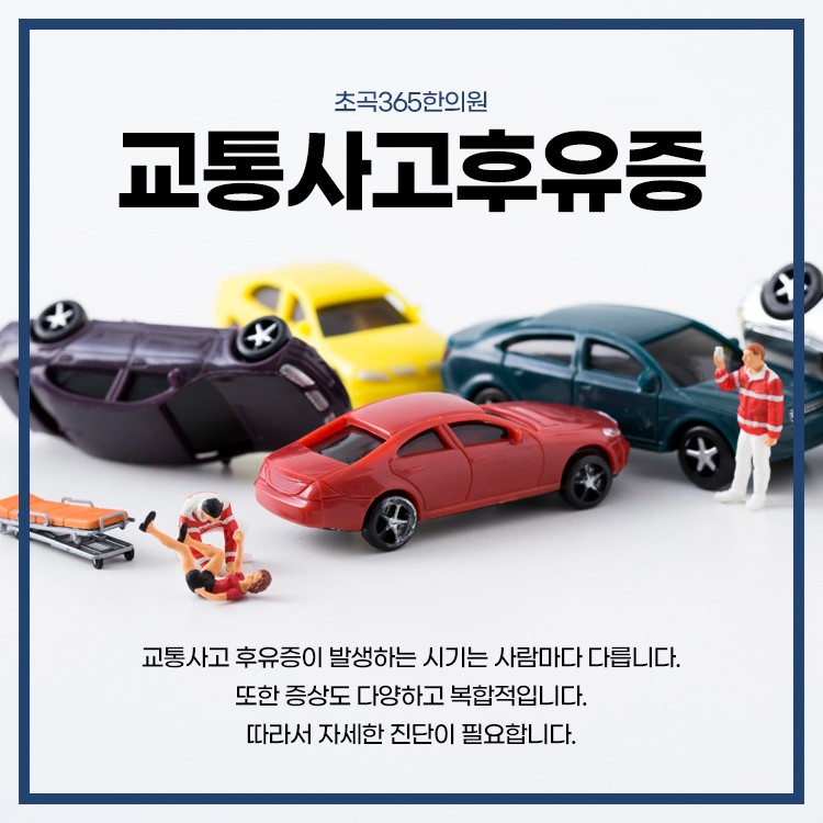사람마다 후유증 발생 시기는 다르지만 이르면 사고 다음 날, 며칠 후에 일어날 수 있으며 길게는 몆주후, 몇개월 후에 나타날 수 있습니다. 무엇보다 눈에 보이지 않는 증상을 정확하게 짚어내어 치료하는 것이 중요합니다. 시간이 지난 후 몸에게 문제가 발생하면 교통사고 후유증이라 인지 못 하는 경우가 많습니다. 단순히 컨디션이 좋지 않아 일시적으로 몸이 안 좋다고 생각하여 넘어가는 경우가 있지만 교통사고 후유증일 수 있으니 경각심을 갖고 한의원에 내원하시는 게 좋습니다.