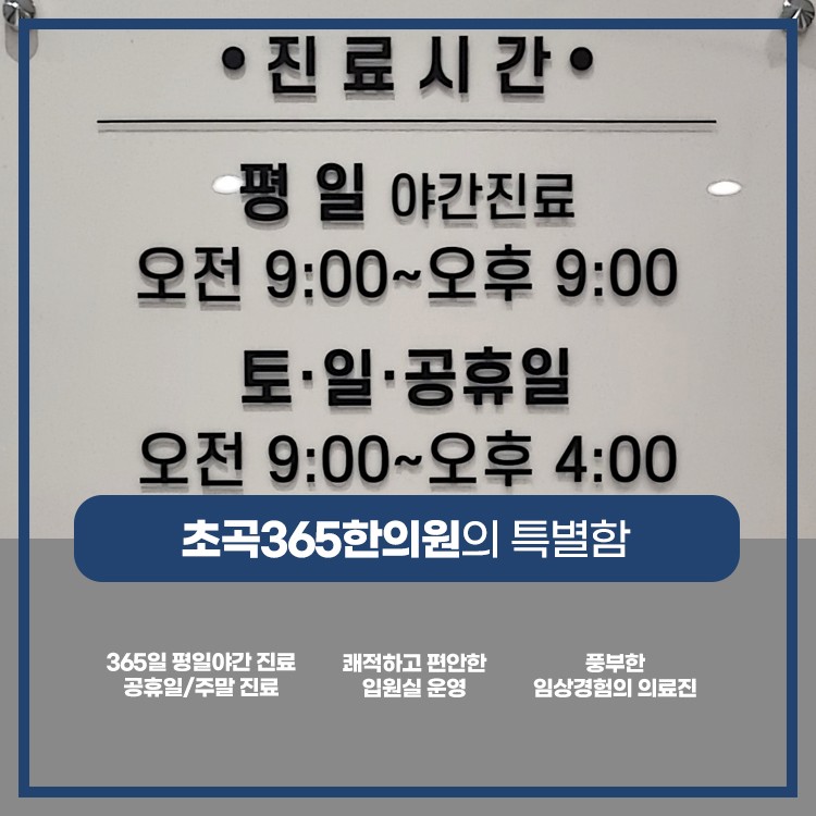 본원에서는 환자분의 빠른 회복을 위해 1인실과 2인실 입원실을 운영하고 있습니다. 쾌적하고 편안한 환경에서 치료에 집중하여 일상으로 빠른 복귀를 하실 수 있도록 도움을 드리고 있습니다. 예상치 못한 사고로 어디로 가야 할지 모르시겠다면 언제든지 내원 받으실 수 있도록 매일 평일 야간진료를 진행하고 있으며 토요일, 일요일, 공휴일에도 진료를 보고 있습니다.