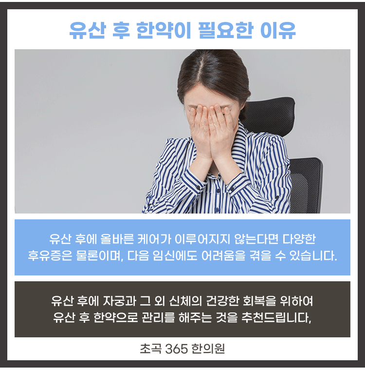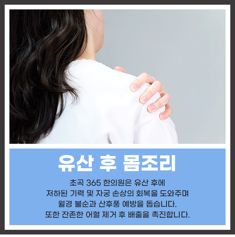 대부분의 사람들이 출산 후 몸조리에 대해서는 익히 알고 실천하고 계십니다. 하지만 유산 또한 충분한 몸조리가 필요하다는 것은 잘 모르시는 분들도 많이 계시는데요, 그대로 방치하고 저절로 회복되기를 기다리는 것보다는 적극적으로 치료받고 건강상태를 체크하는 것이 바람직합니다. 포항 유산후몸조리 한의원에서는 유산후보약을 통해 보다 확실하고 적극적으로 건강을 회복하시기를 추천드리고 있습니다. 유산후몸조리를 제대로 하지 않고 자신을 보살펴주지 않으며 약해진 몸을 방치하게 되면 유산재발율이 높아질 수 있습니다. 유산이 발생한 원인도 아직 그대로이고, 유산으로 후유증이 생길 수도 있기 때문입니다. 포항 유산후몸조리 한의원 초곡365한의원에서는 자궁내막의 유착이나 생리불순, 월경량 감소, 산후풍 등의 후유증을 조심하시라고 말씀드리고 싶습니다.