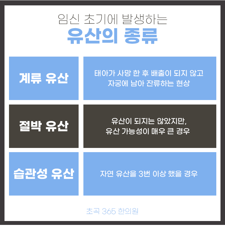 현대에 와서는 결혼연령이 점점 높아지고 있고, 그로 인해 자연스럽게 고령임신 또한 늘어나면서 유산의 비중 또한 늘어나고 있는 추세입니다. 유산이란 임신 중 예기치 못한 외부적인 요인과 내부적 요인으로 인해 태아가 생존하지 못하고 사망에 이르는 현상을 말합니다. 자연유산의 경우에는 대부분 염색체 이상으로 발생하게 되고, 특별한 예방 방법이 없다는 점에서 산모의 심적 고충이 클 뿐만 아니라 몸에 가해지는 충격 또한 크다는 것이 사실입니다.