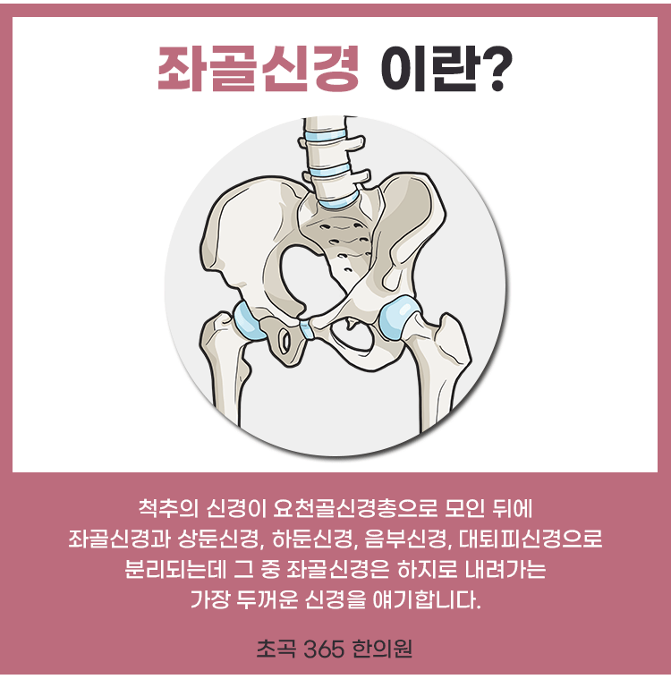 골반통증을 일으키는 좌골신경통은 보통 이름이 많이 낯선 질환일텐데요. 허리디스크와 헷갈리기도 하지만 분명한 차이가 있는 좌골신경통에 대해서 알아보고 증상이 있다면 포항 골반통증 한의원 초곡365한의원에 내원하여 진료를 받아보시는 것을 추천드립니다. 좌골은 우리가 앉았을 때 바닥에 닿는 뾰족하고 딱딱한 엉덩이 뼈를 말합니다. 이 뼈 사이로 허리에서 골반 아래쪽으로 내려가는 신경을 좌골신경이라고 합니다. 좌골 신경은 다리의 운동과 감각을 담당하는 굵고 긴 신경으로 허리에서 내려오는 신경뿌리들이 엉덩이와 허벅지, 종아리를 지나 발바닥까지 내려가는 신경입니다. 여러가지 원인에 의해서 이 신경이 압박되거나 손상되게 되면 염증이 생기면서 신경이 지나가는 부위를 따라 골반통증이나 저림, 당김 등의 증상이 나타날 수 있는데 이를 좌골신경통이라고 말합니다.