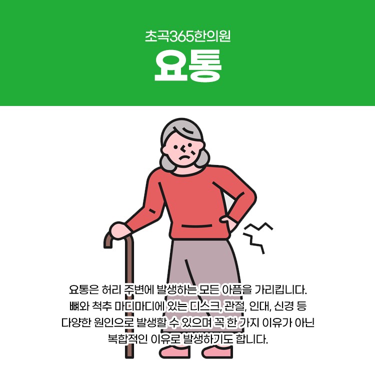 그러니 요통으로 힘드신 분들은 세밀한 진단부터 치료, 관리까지 받아보시길 바랍니다. 환자분들을 위해 365일 평일 야간진료, 공휴일과 주말 진료하고 있으니 언제든지 내원하시길 바랍니다. 건강한 척추, 허리 건강을 위해 초곡365한의원에서도 최선을 다해 올바른 진단을 하겠습니다. 감사합니다.