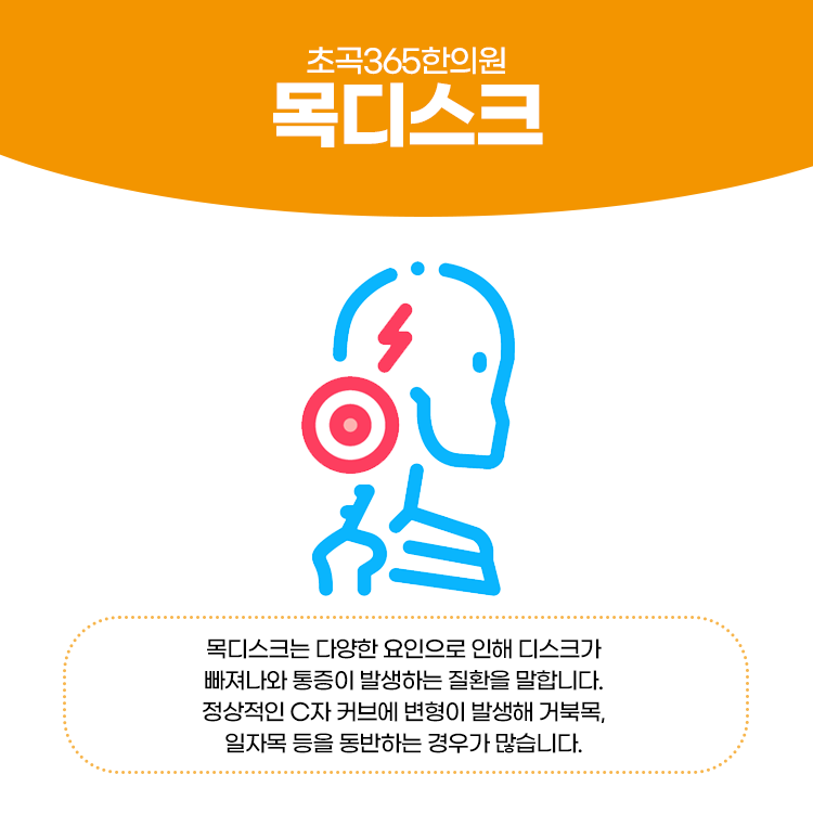 목디스크는 젊은 층에서도 많이 발생하고 있는 만큼 주의가 필요합니다. 목디스크는 다양한 요인으로 인해 디스크가 빠져나와 통증이 발생하는 질환을 말합니다. 정상적인 C자 커브에 변형이 발생해 거북목, 일자목 등을 동반하는 경우가 많습니다. 이렇게 변형이 생기는 데는 다양한 원인이 있습니다.