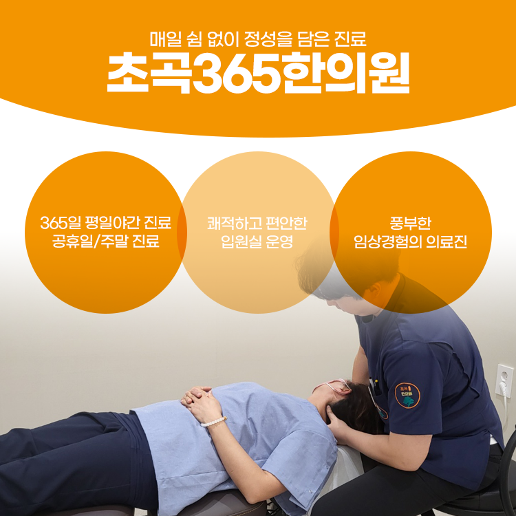 초곡365한의원에서는 목디스크에 대한 증상을 완화하는 것뿐 아니라 재발을 낮추기 위해 증상의 원인을 파악하고 그에 알맞은 한방치료를 진행하고 있습니다. 치료에 들어가기에 앞서 정밀한 진단을 통해 정확하고 꼼꼼한 검진을 실행한 후 그에 적합한 비수술적 한방치료를 시행합니다.