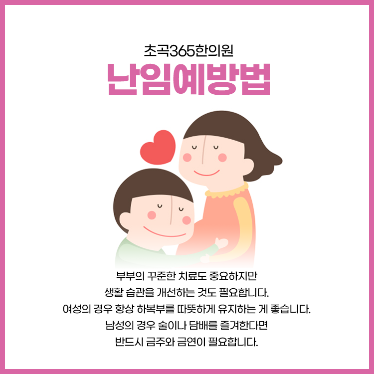난임은 임신이 불가한 것이 아니라 어렵고 늦어지는 것뿐입니다. 건강한 임신을 위해서는 두호동 난임치료한의원의 한방요법과 함께 개인적으로도 노력을 해주셔야 합니다. 초곡365한의원에서는 과정을 도와드리는 것입니다. 면밀한 상담을 통해 한방요법으로 도움을 드릴 수 있으며 임신을 준비하는 경우 평소 규칙적인 운동을 하는 것이 좋습니다.