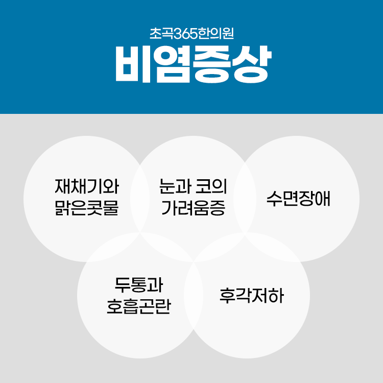 면역력을 증진하고 코 내 환경이 건강하게 회복된다면 기능이 개선되고 시원하게 숨을 쉴 수 있습니다. 본원에서는 매일 평일 야간진료를 보고있으며, 주말과 공휴일에도 쉬지 않고 진료를 시행하고 있습니다. 코안에 답답함이 지속되고 콧물과 재채기가 반복된다면 지체하지 마시고 즉시 초곡365한의원에 내원하셔서 꼼꼼한 진단과 그에 맞는 한방치료를 받아보시길 바랍니다. 감사합니다.