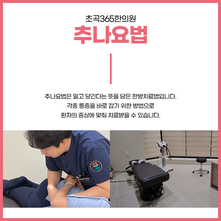 만성통증이 있는 경우 추나요법을 통해 증상을 개선할 수 있습니다. 포항초곡 관절교정 한의원에서는 비수술적치료인 추나요법을 통해 척추질환과 관절질환을 다루고있습니다. 개인 생활습관에 따라 통증이 악화하거나 영향을 줄 수 있으니 생활습관을 개선하는 노력도 필요합니다.