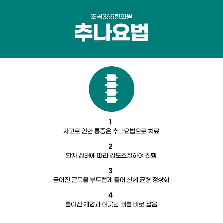 그 중 추나요법은 비수술 요법으로서 뼈, 관절, 근육을 밀고 당겨서 올바르게 교정을 해주기 위한 치료법인데요. 통증 원인이 될 수 있는 척추와 관절 그리고 인대와 근육 긴장을 풀어주면서 신경을 자극하여 틀어진 부분을 바로 잡도록 하며 통증 완화, 척추교정, 디스크 치료에도 효과적일 수 있을 것입니다.