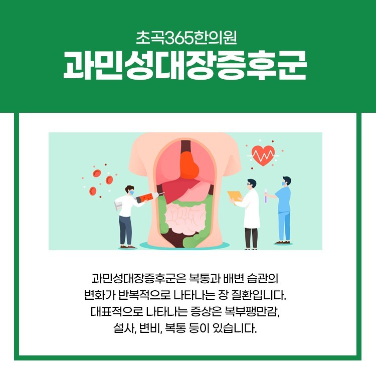 업무를 바쁘게 진행하게 되는 것도 지치게 되지만 인간관계로 스트레스를 받는 것 또한 몸과 마음이 버티기 힘든 일이 될 수 있습니다. 하루 하루 스트레스가 심해지고 음식으로 기분을 푸시려는 경우도 많은데 맵고 짠 자극적인 음식 섭취는 과민성대장증후군을 호소하는 분들도 많으십니다. 과민성대장증후군이란 설사 증상 외에도 복통, 복부 팽만감 증상이 동반되며 발생하는데 이런 증상으로 일상생활에 큰 불편함을 느끼기도 합니다.